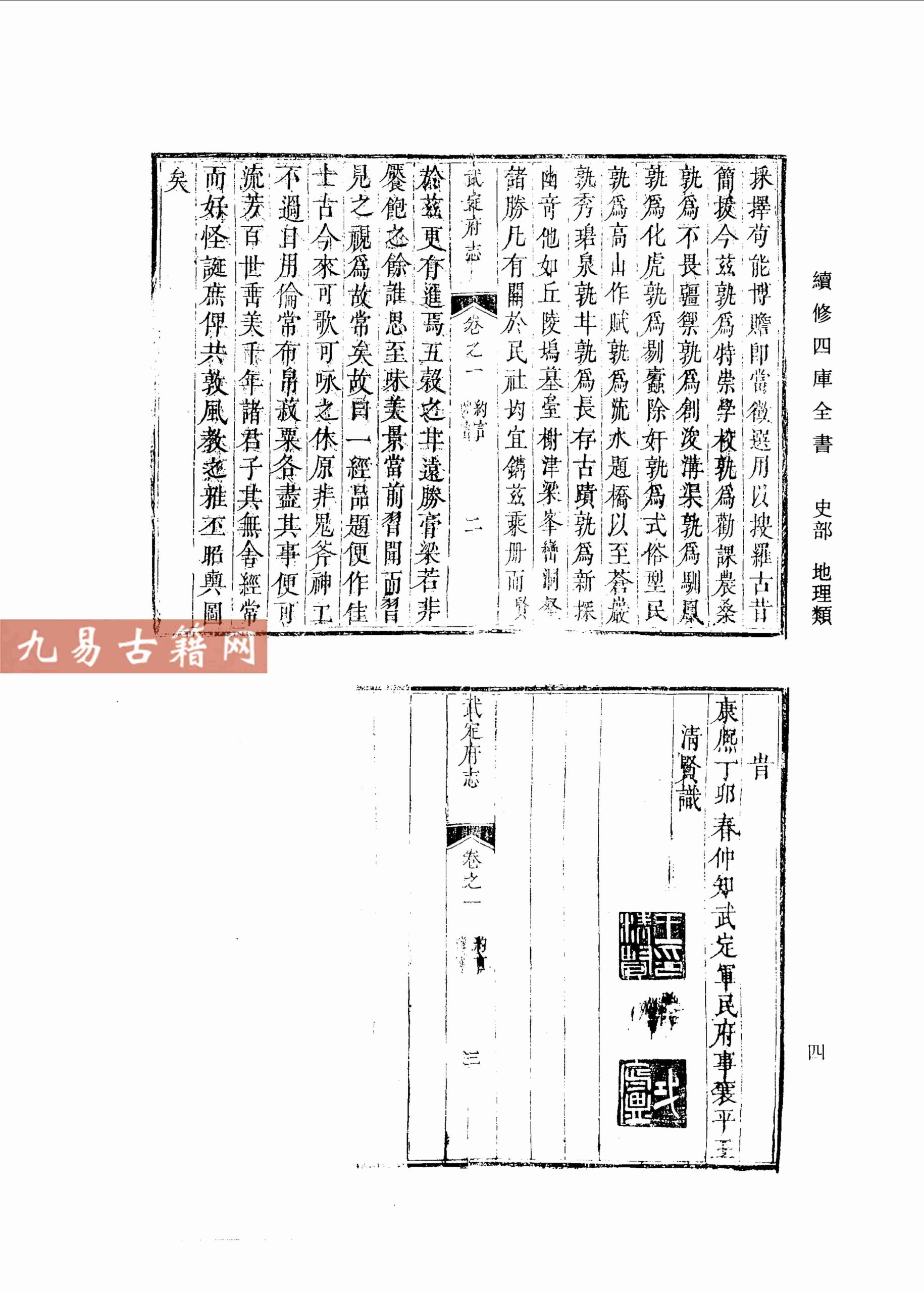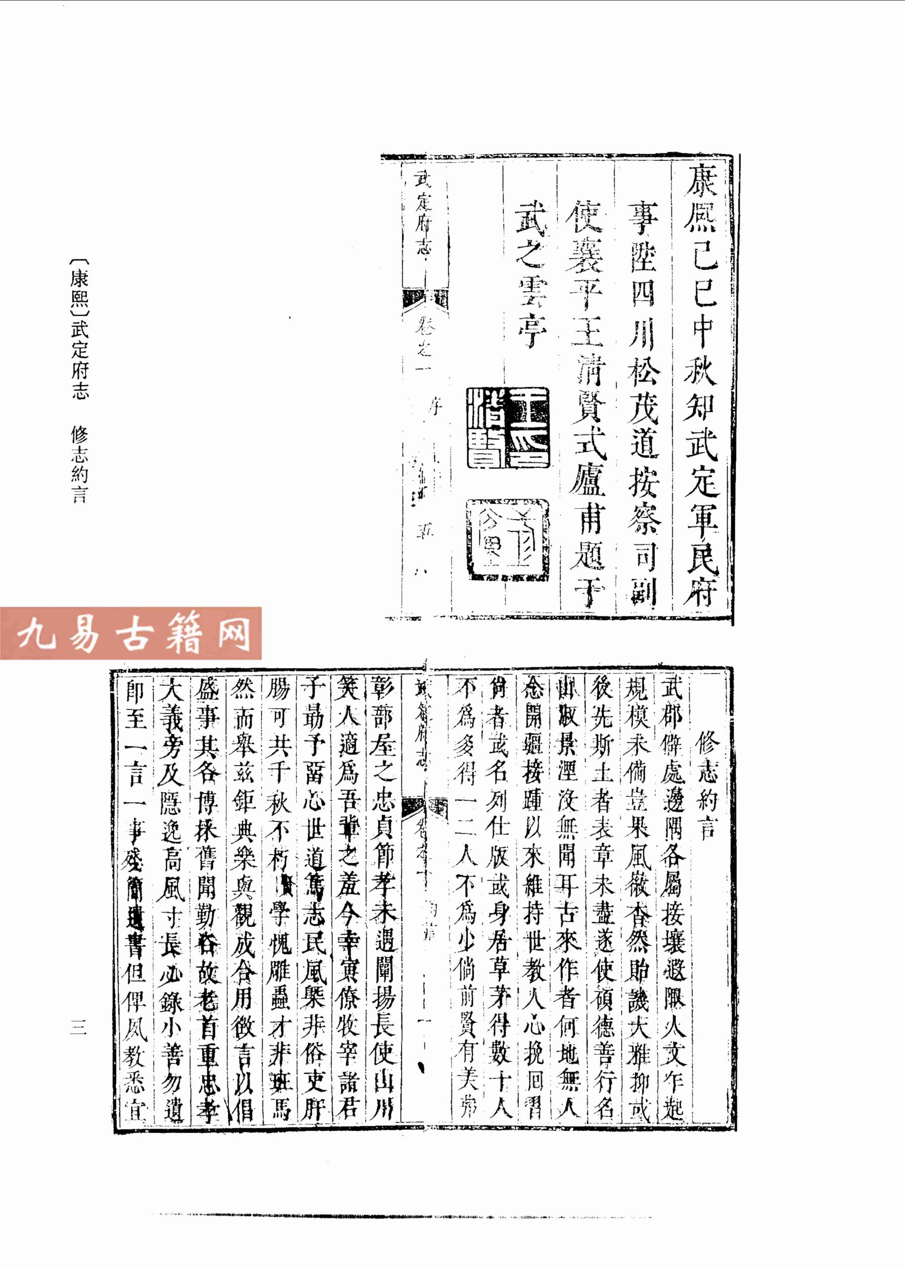 《康熙》武定府志成书于清康熙十二年(1673年),由武定府知府王清贤主持纂修。该书属清代官修地方志,是现存较早系统记述山东鲁北地区武定府及其所属州县历史地理的综合性方志。