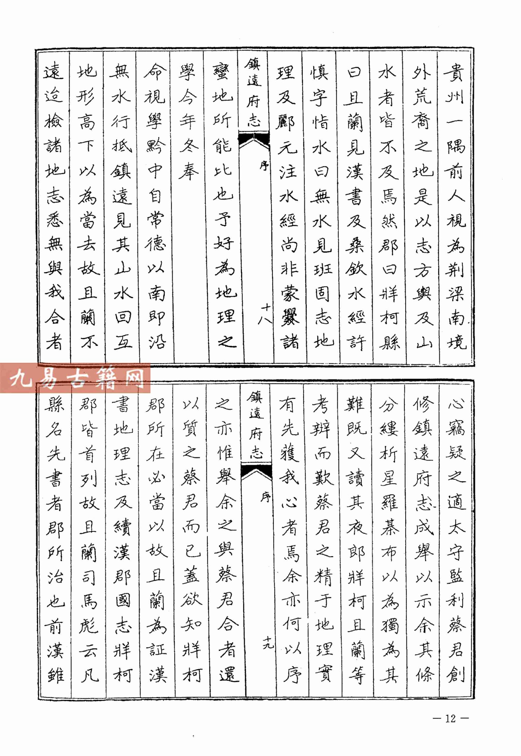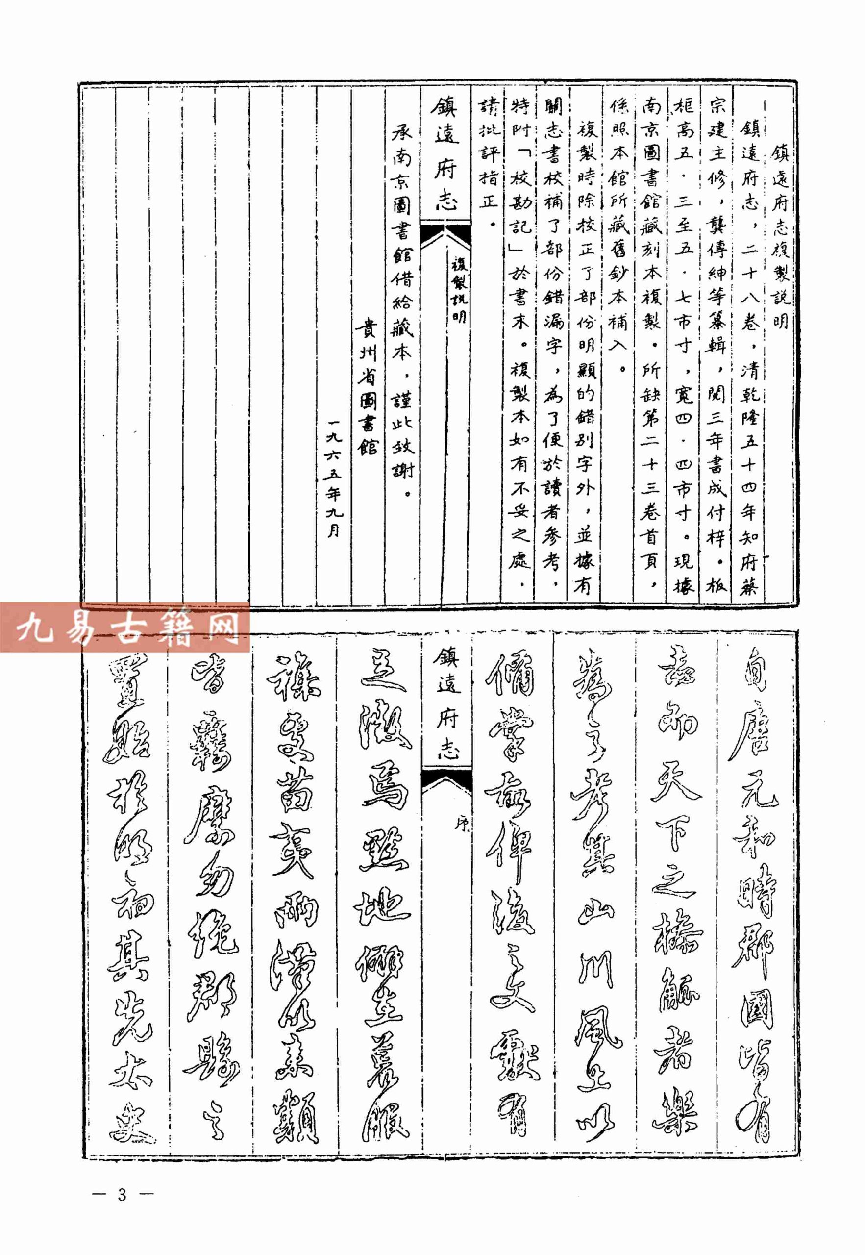 《乾隆镇远府志》:成书于清乾隆五十六年(1791年),属清代府级官修方志。内容涵盖镇远府辖境之建置、山川、赋役、学校、人物等,体例严谨,体现清代鼎盛时期西南边疆治理的文献特征。