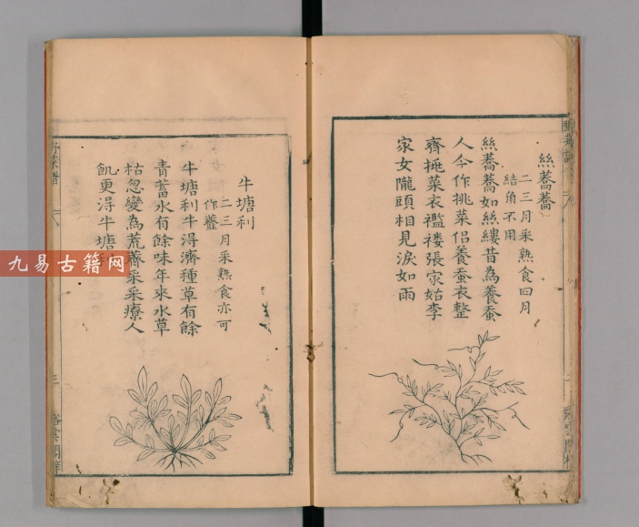 该书专为江淮地区饥荒时辨识、采食野生植物而编纂。作者王磐系江苏高邮人,深谙当地物候与植被,故所录野菜具有鲜明的地域性与实用性。全书以图文结合形式,记载江淮间可食野生植物五十余种,每幅图皆附简要说明与一首朗朗上口的“谣谚”,既描述植物形态特征、生长环境,又注明采集时节、食用方法及注意事项。其文字简练准确,插图虽质朴却力求形肖,突出辨识要点,体现了明代实学思潮下关注民生、讲求实用的编撰特点。